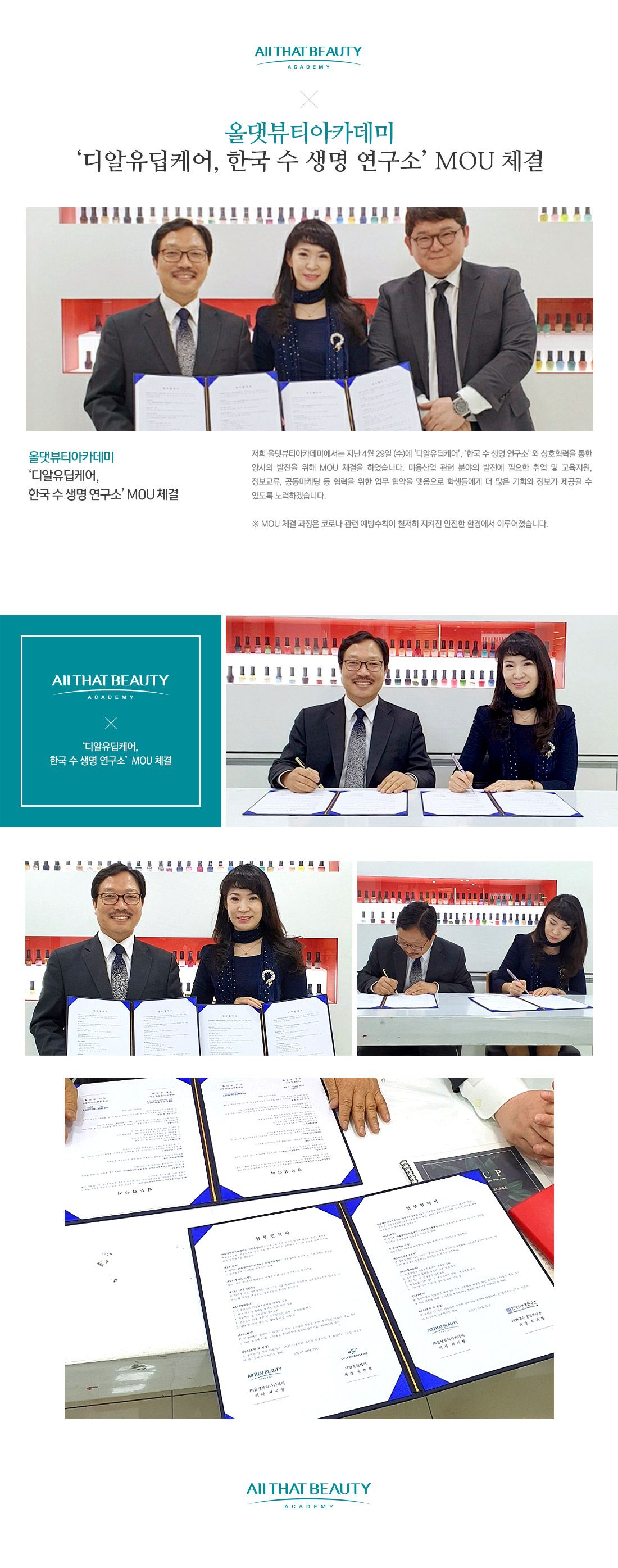 | 제목 | 올댓뷰티아카데미 ‘디알유딥케어, 한국 수 생명 연구소’ MOU 체결 | ||